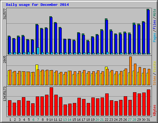 | Day | Hits | Files | Pages | Visits | Sites | KBytes | ||||||